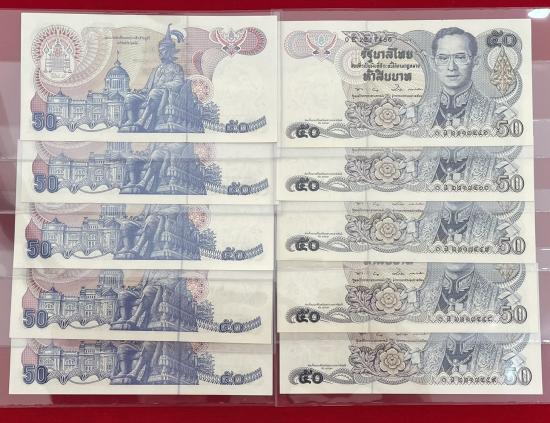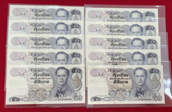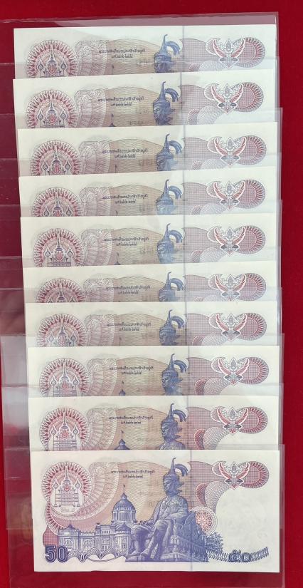 ธนบัตร 50 บาท รัชกาลที่ 9 แบบ 13 ลายน้ำสมเด็จย่า จำนวน 10 ใบ สภาพสวยตามรูป