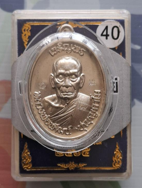 เหรียญเจริญพรบน 65 เนื้ออัลปาก้า-หลังแบบ เลขตัวเดียว ๔ สร้าง 100 เหรียญ หลวงพ่อพัฒน์ ปุญฺญกาโม เลี่ยมพลาสติก สวยๆกล่องเดิม |