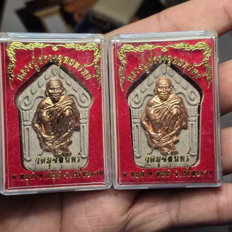 (2 องค์)หลวงปู่สรวงอุดมทรัพย์ วัดมุจลินทร์ จ.ศรีสะเกษ กล่อมเดิมครับ