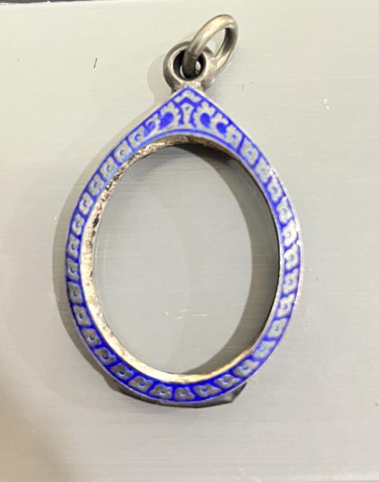 กรอบเงินแท้ ลงยา สูง 30 มิล กว้าง 24 มิลรูปไข่ 8.5 กรัม