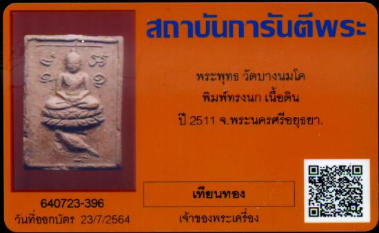 (( +บัตรรับประกัน ))) พระหลวงพ่อปาน พิมพ์ทรงนก ออกวัดบางนมโn อ.เสนา จ.อยุธยา จะมีทั้งหมด 6 พิมพ์ เนื้อดินเผาอุดผง ปี 2511