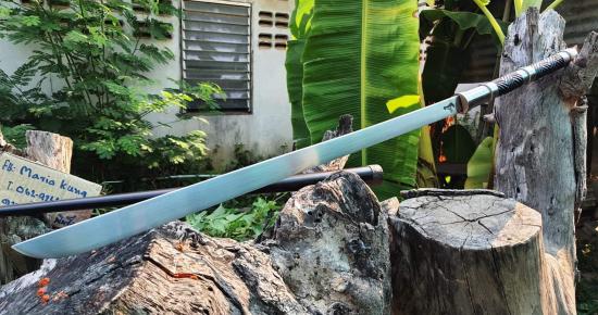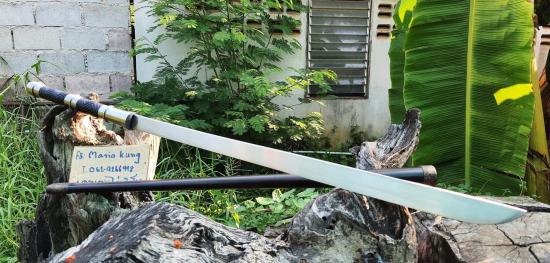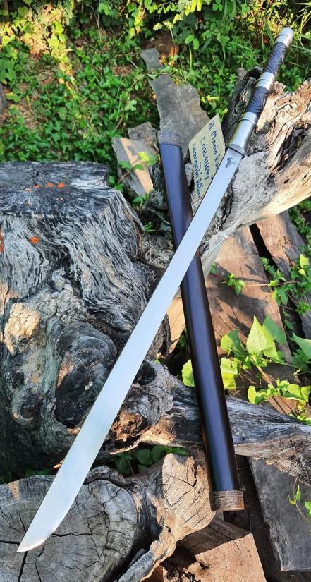 ดาบหลวง ตอกโค้ตไก่ ขนาดใบ24นิ้ว งานเหล็กแหนบตีร้อนเปิดคมชุบแข็งใช้งานใด้จริง สันหนา9มิลด้ามแบบสามป้องงานเกลี้ยงเหล็กเพลากลึงด้าม12นิ้ว ด้ามถักลายจรเข้ขบฟัน ลงรัก ฝักไม้ดงดำ ยาวตลอดเล่ม93เซ็นติเมตร ดาบชุบแข็งเปิดคมใช้งานใด้จริง |