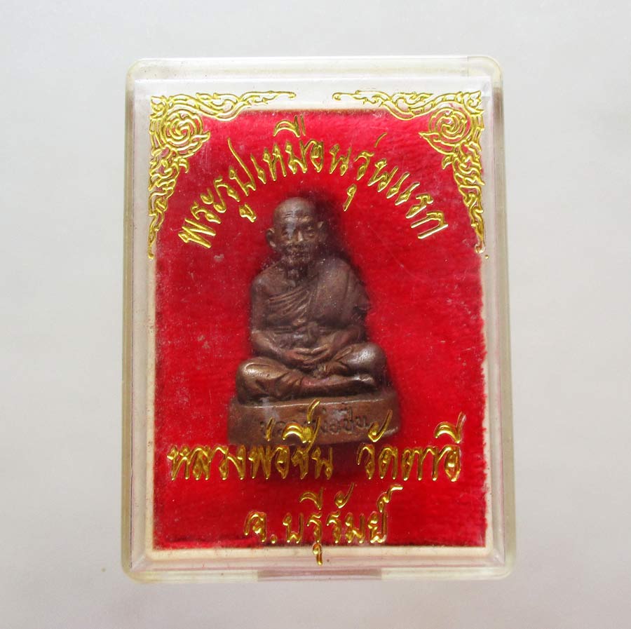 รูปเหมือนหล่อลอยองค์ รุ่นแรก หลวงพ่อชื่น ติคญาโณ วัดตาอี จ.บุรีรัมย์ เนื้อทองแดง ตอกโค๊ต อุดผงมวลสาร ฝังตะกรุด สภาพสวย พร้อมกล่องเดิม !!