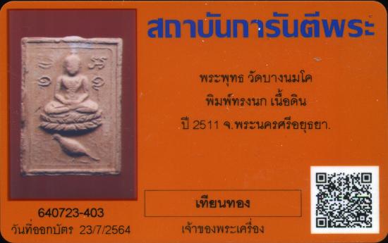 (( +บัตรรับประกัน ))) พระหลวงพ่อปาน พิมพ์ทรงนก ออกวัดบางนมโn อ.เสนา จ.อยุธยา จะมีทั้งหมด 6 พิมพ์ เนื้อดินเผาอุดผง ปี 2511 |
