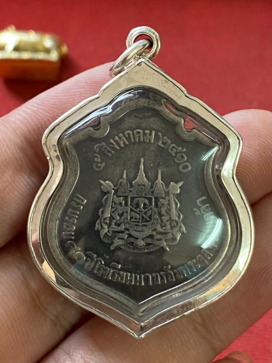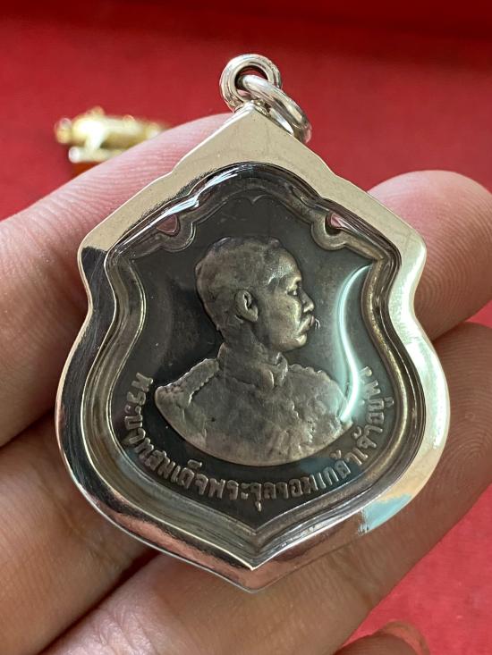 เหรียญ ร.๕ โรงเรียนนายร้อย ลป.ทิมปลุกเสก ปี ๒๕๑๐ เนื้อเงิน สภาพใช้ พร้อมเลี่ยมเงินขัดเงา