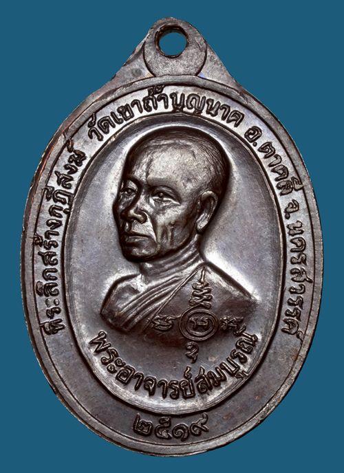 เหรียญหลวงปู่สี วัดเขาถ้ำบุญนาค พิมพ์หลังพระอาจารย์สมบูรณ์ ( เหรียญสองอาจารย์ ) เนื้อทองเเดง ปี 2519 จ.นครสวรรค์ สภาพสวยครับ