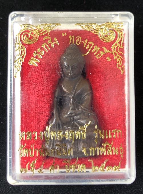 พระกริ่งทองฤทธิ์ รุ่นแรก หลวงปู่ทองฤทธิ์ วัดป่าฉันทนิมิต เนื้อนวโลหะ ปี 2539 จ.กาฬสินธุ์ จำนวนสร้าง 2,555 องค์ ตอกโค๊ต หมายเลข กริ่งดังกังวาล สวยๆ มาพร้อมกล่องเดิมครับ