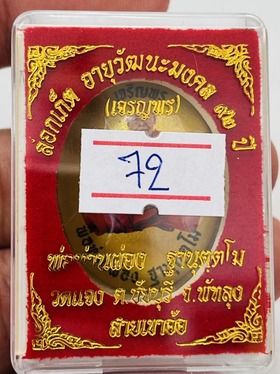 ล๊อกเกตเจริญพรพ่อท่านผ่อง ฉากทอง อุดมวลสาร ติดเกษาจีวร ฝังพลอย ฝังตะกรุต 3 ดอก หมายเลข 72 |