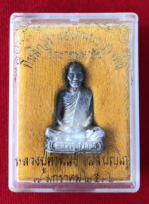 รูปเหมือน หลวงปู่คำพันธ์ วัดธาตุมหาชัย รุ่นอุดมมงคล เนื้อเงิน ปี 2536 สภาพสวย มาพร้อมกล่องเดิมครับ