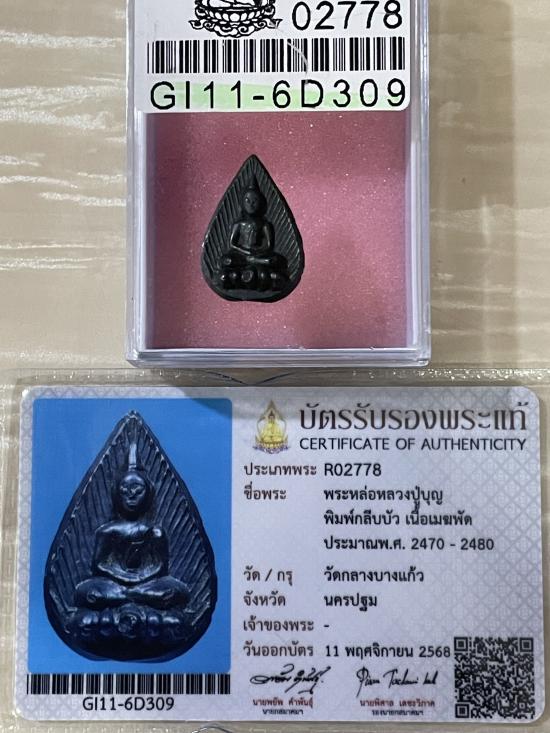 (เคาะแดง2500) +บัตรสมาคม พระหล่อหลวงปู่บุญกลีบบัว เนื้อเมฆพัตร