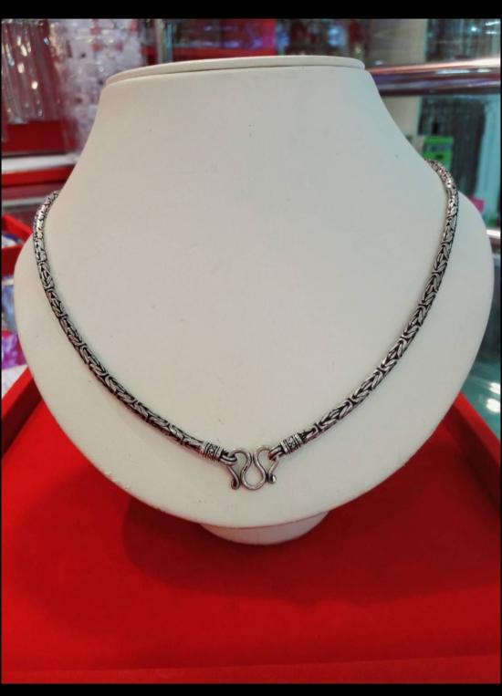 สร้อยเงินแท้ลายบาหลีรมดำ ยาว 23 นิ้ว หนัก 39 กรัม ขนาดยาวสว มหัวได้ |
