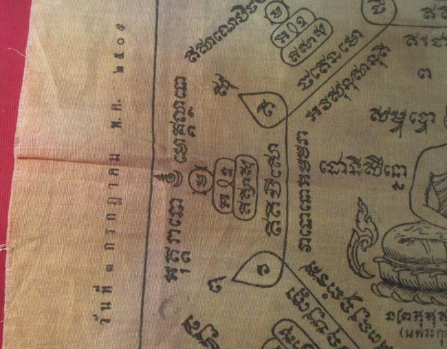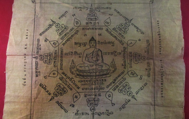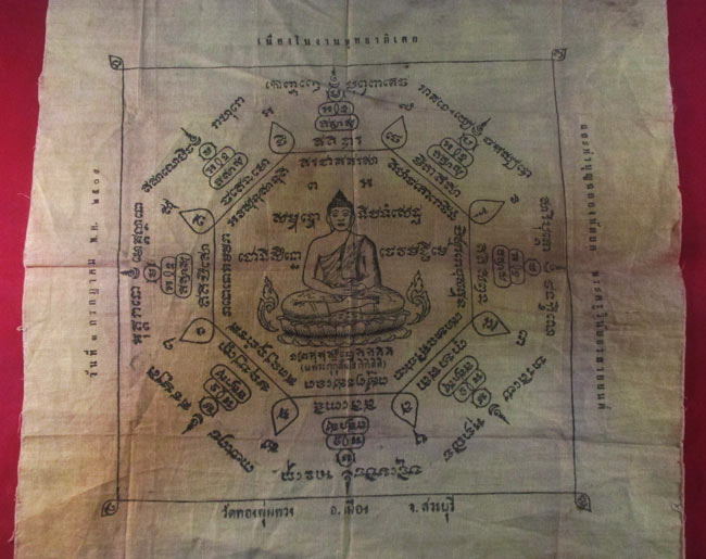 ผ้ายันต์ วัดทองพุ่มพวง อ.เมือง จ.สระบุรี วันที ๓ กรกฎาคม พ.ศ. ๒๕๐๙ ครับ (พระบ้าน ครับ) |