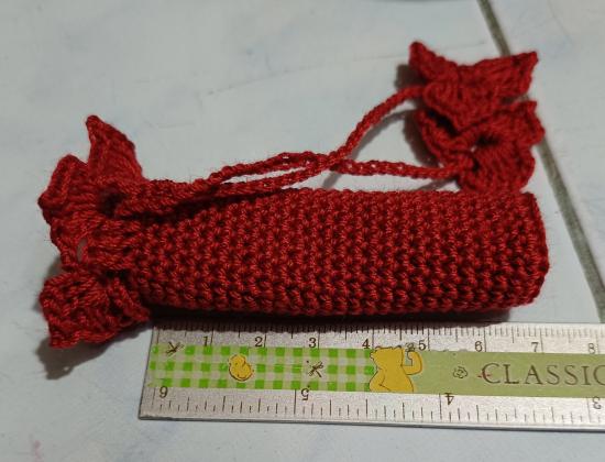 ซองใส่ตะกรุด ขนาดความยาว 7 ซ.ม เส้นผ่าศูนย์กลาง 2 ซ.ม ทำจากด้ายถักวีนัส งานถัก งานฝีมือครับ สีแดง (เคาะเดียว)