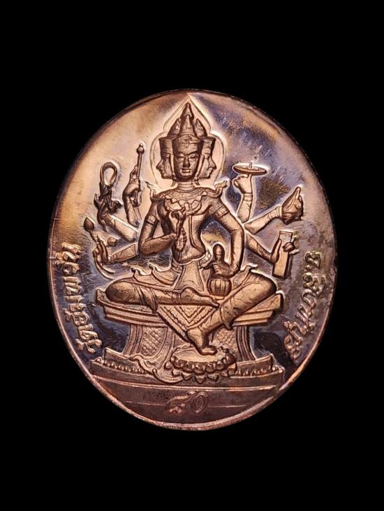 หลวงพ่อจรัญ วัดอัมพวัน จังหวัดสิงห์บุรี เหรียญ 80 ปีหลังพระพรหมเนื้อทองแดง พิมพ์เล็ก |