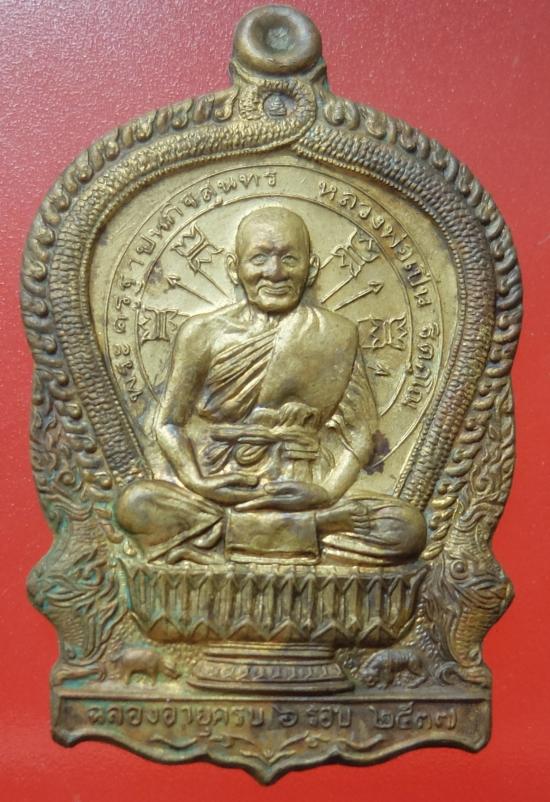 เหรียญนั่งพาน 6 รอบ หลวงพ่อเปิ่น วัดบางพระ ปี 2537 เนื้อทองเหลือง |