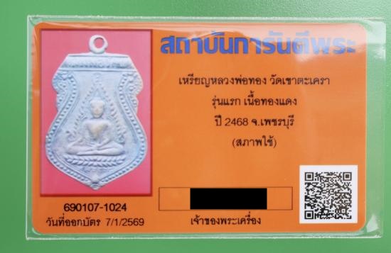 มาครับ เหรียญรุ่นแรก หลวงพ่อวัดเขาตะเครา ปี 2468 สภาพพอสวย พร้อมบัตรรับรองครับท่าน (สวย ๆ ขึ้นหลักแสน)
