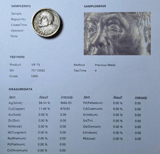 เหรียญนี้เนื้อเงิน (((เงิน Ag(Silver) 88.50% น้ำหนักรวม 15.12 กรัม)))