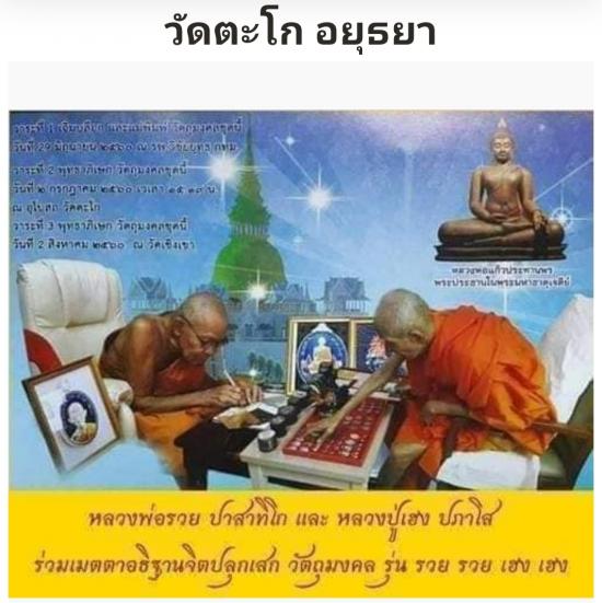 รวยๆเฮงๆ เหรียญหลวงพ่อรวย วัดตะโก อยุธยา รุ่น รวย รวย เฮง เฮง ออกในปี 2560 ทันหลวงพ่อ รุ่นสุดท้าย ประสบการณ์ดังรถไฟชน เนื้อทองฝาบาตร หลวงปู่เฮง ปภาโส ร่วมปลุกเสก หายากแล้วครับ มีประสปการฯณ์มากครับ ด้านหลังไก่ตัวใหญ่และยันต์ครูวัดตะโก กล่องเดิมจากวัด เป็นรุ่นที่หลวงพ่อรวย ปาสาทิโก เมตตาปลุกเสกให้เป็นรุ่นสุดท้าย เพื่อนำปัจจัยสร้างพระมหาธาตุเจดีย์ เจตนาบริสุทธิ์เพื่อทำนุบำรุงสร้างถาวรวัตถุในพระพุทธศาสนา ผู้สร้างบริสุทธิ์ หลวงพ่อรวย ปาสาทิโก ท่านอยู่อย่างสมถะ นอนเตียงไม้อยู่หลังพระประธาน ไม่มีสิ่งฟุ้งเฟ้ออำนวยความสะดวกเกินความจำเป็นของสมณะสงฆ์ พระเครื่องและวัตถุมงคลของหลวงพ่อรวย วัดตะโก มีประสบการณ์มากมายทั้งทางด้านแคล้วคลาดปลอดภัยจากภัยอันตราย และโดยเฉพาะอย่างยิ่งด้านโชคลาภ ค้าขาย รวยเจริญสุข เงินทองไม่ขาดมือ ทำให้คนนิยมบูชาศรัทธากันทั่วประเทศ ไปถึงต่างประเทศ ทั้งด้วยชื่อท่านเป็นมงคล และ ชื่อรุ่นเป็นมงคล เหรียญทองเหลืองฝาบาตร สภาพสวย ตอกโค๊ด รวย ที่สังฆาฏิ |