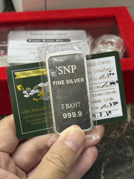 แท่งเงิน 999.9% 5บาท 76.xxกรัม SNP ห้างทองแสงนภา บัตรรับประกันตรงจากร้าน |