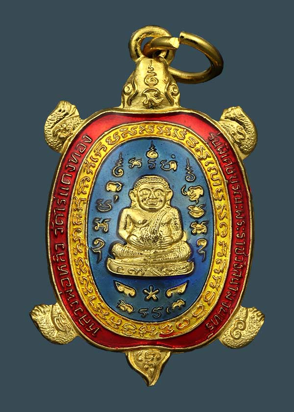 เหรียญพญาเต่า หลวงพ่อหลิว วัดไร่แตงทอง รุ่นบูรณะพระราชวังสนามจันทร์ ปี 2538 เนื้อกะไหลทองลงยา ตอกโค๊ด