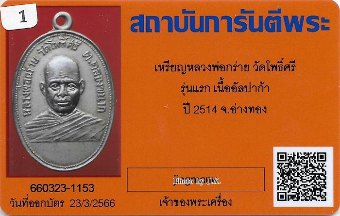 เหรียญ หลวงพ่อกร่าย วัดโพธิ์ศรี จ.อ่างทอง