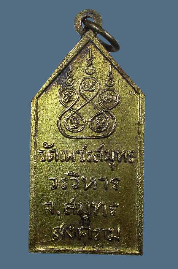 เหรียญซุ้มประตู หลวงพ่อวัดบ้านแหลม ปี2500 จ.สมุทรสงคราม เนื้อทองแดงกะไหล่ทอง สภาพสวยเดิม