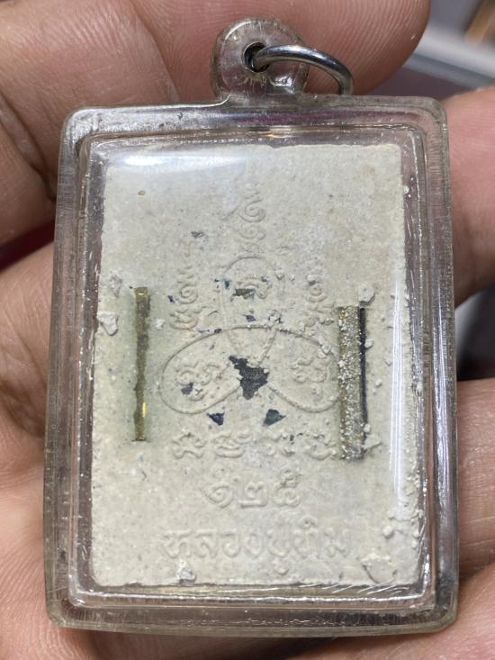 พระผงรูปเหมือนเศียรโต หลวงปู่ทิม วัดละหารไร่ ย้อนยุค รุ่น ๑๒๕ปี เนื้อขาวหลังฝังพลอย+ตะกรุดเงินคู่ ปี2546