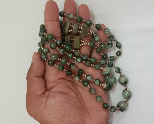 สร้อยคอหยกสไตล์วินเทจ,ยาว30นิ้ว,เม็ดใหญ่14มิล,เม็ดเล็ก8มิล,สินค้ามือ1