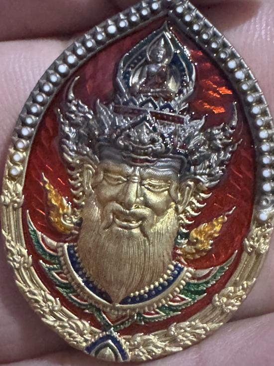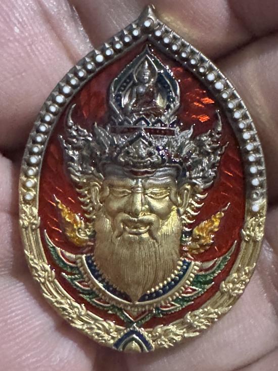 หรียญพ่อแก่ รุ่นเศรษฐี หลวงปู่ฝั้น ปสาโท วัดศรีถมอรัตน์(หน้าผา) เพชรบูรณ์ เนื้อชนวนลงยาสีส้ม เครื่องทรง ตอกโค๊ต ตอกหมายเลข 29