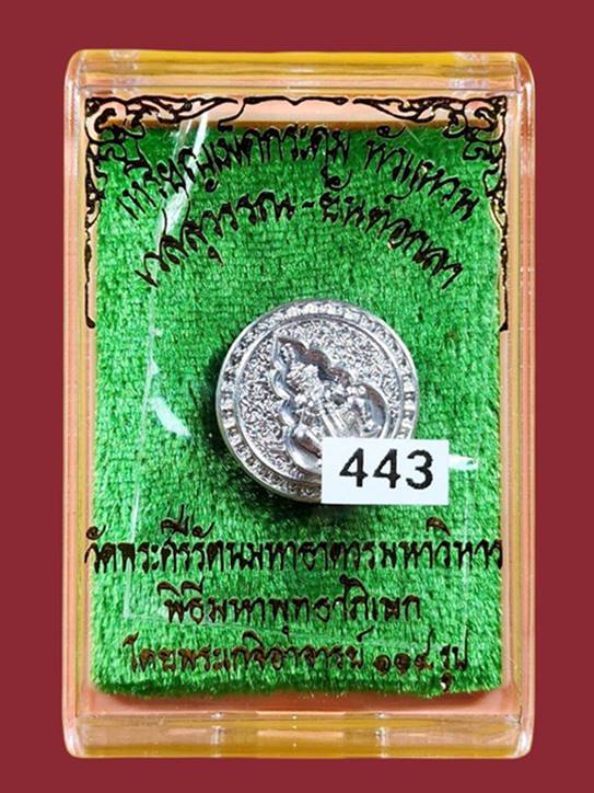 (เนื้อปีกเครื่องบิน-แจกในพิธี เลข 443 ) เหรียญเม็ดกระดุม หัวแหวน เวสสุวรรณ ยันต์นะเศรษฐี หลังยันต์อกเลาพระพุทธชินราช : สาริกาคู่ #ขนาดเส้นผ่าศูนย์กลาง 1 เซนติเมตร วัดพระศรีรัตนมหาธาตุวรมหาวิหาร |