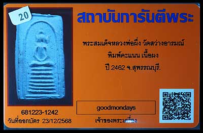พระผงพิมพ์สมเด็จ ปี2462 หลวงพ่อผึ่ง วัดสว่างอารมณ์ สุพรรณบุรี