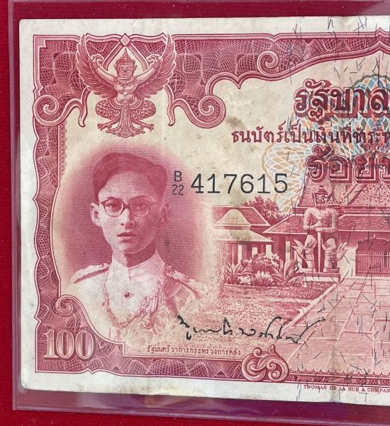 แบงค์ 100 บาท ร. 9 แดง พิมพ์โทมัส 1 ใบ เดิมๆๆ