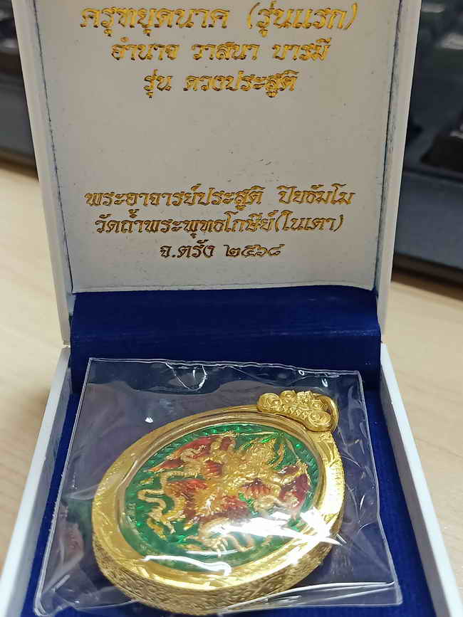ดใจ 100 พร้อมใช้ เหรียญครุฑหยุดนาค รุ่นแรก ดวงประสูติ หลวงพ่อประสูติปิยธัมโม วัดถ้ำพระพุทธโกษีย์(วัดในเตา) จ.ตรัง 2568 ชุบทอง ลงยาเขียว หลังปิดมวลสาร หมายเลข 5 สร้าง 9 กล่องเดิม |