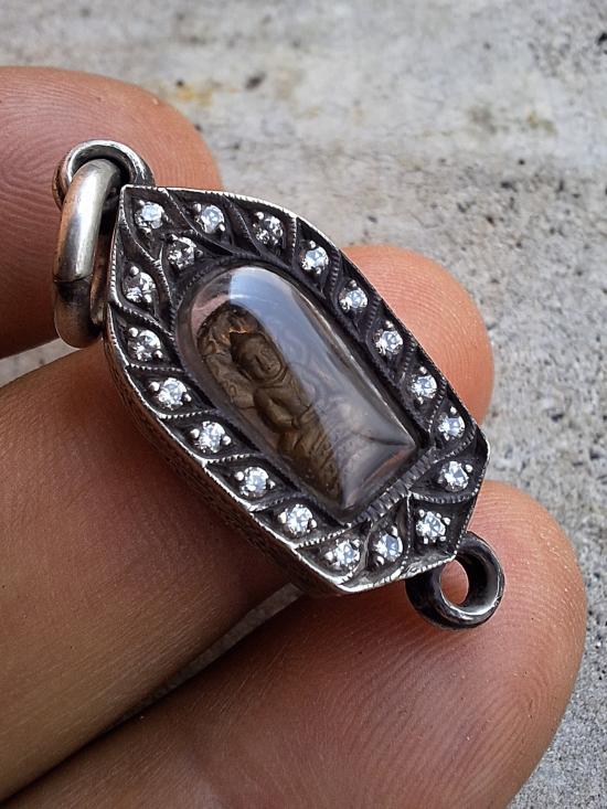 พระนาคปรกใบมะขาม รุ่นแรก หลวงพ่อสิน วัดละหารใหญ่ ปี2536 เลี่ยมเงินโบราณฝังเพชร |