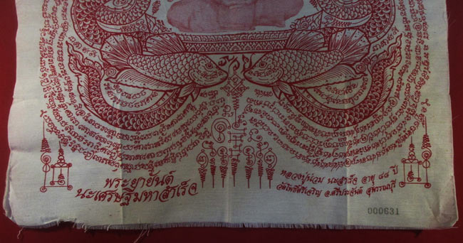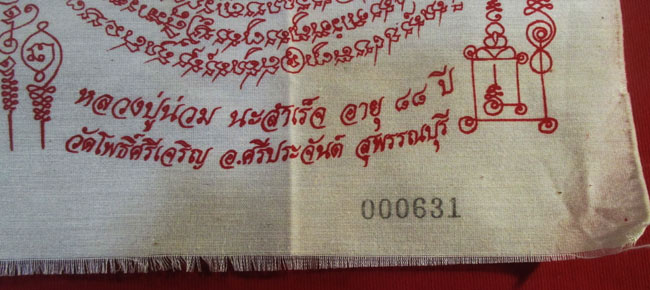 ผ้ายันต์ พระยายันต์ นะเศรษฐีมหาสำเร็จ หลวงปู่น่วม มะสำเร็จ อายุ ๘๘ ปี วัดโพธิ์ศรีเจริญ อ.ศรีประจันต์ สุพรรณบุรี ครับ (พระบ้าน ครับ) |
