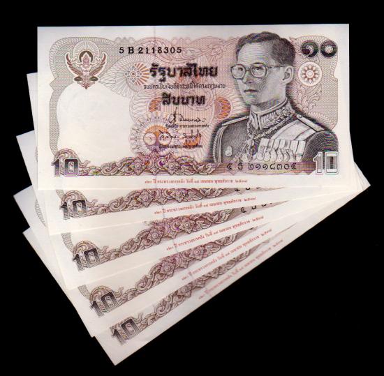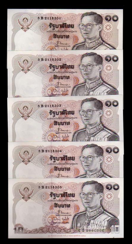 ## ธนบัตร 10 บาท ## ทรงม้า ## 120ปี กระทรวง ## เรียงเลข 5 ฉบับ ## แกะแหนบ ## UNC ##