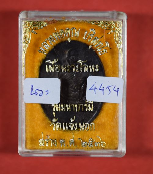 เหรียญหลวงพ่อคูณ ปริสุทโธ รุ่นมหาบารมี เนื้อนวโลหะ เบอร์ 4454 ปี 2536 จ.นครราชสีมา พร้อมกล่องเดิมๆ เคาะเดียวแดง |