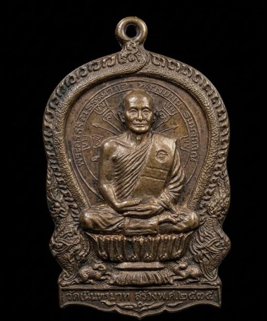 @วัดใจ@ เหรียญนั่งพานรุ่นแรก หลวงพ่อม่น วัดเนินตามาก ชลบุรี ปี 2535 พร้อมกล่องเดิม (เหรียญสวย) |