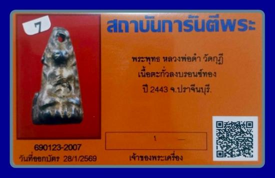 หล่อพระพุทธเนื้อตะกั่ว (ยุคต้น ตะกั่วดำเก่าถึงยุค) หลวงพ่อดำ วัดกุฎี ปี พศ.2443+++บัตรgpra