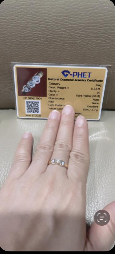 แหวนทองฝังเพชร size 51 ( 16.3 mm) พร้อมบัตร G-phet