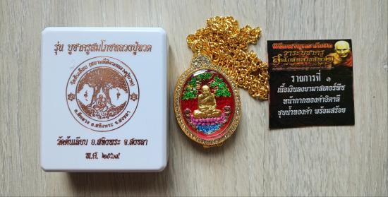 วัดใจเคาะเดียวแดงจ้า เหรียญหลวงปู่ทวด วัดต้นเลียบ เนื้อเงินลงยาหน้ากากทองคำ พร้อมตลับอิตาลีฝังเพชรพร้อมสร้จชุบทอง เคาะเดียวแดงจ้า