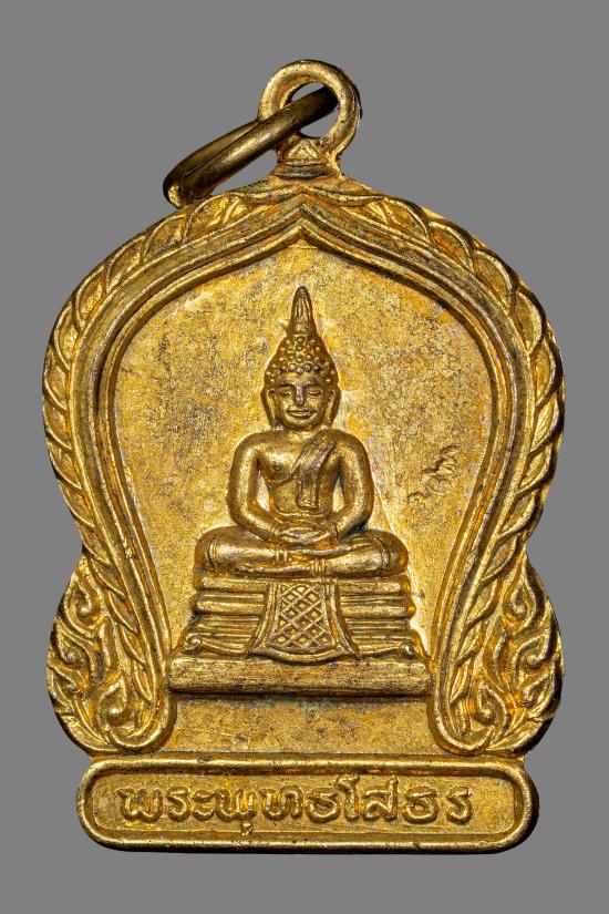 เหรียญหลวงพ่อโสธร วัดมหาธาตุ ปี2505 พิมพ์เล็ก ตอก2โค๊ต กะไหล่ทอง
