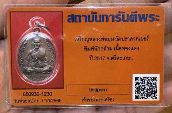 เหรียญนักกล้ามหลวงพ่อมุม วัดปราสาทเยอร์ ปี 2517