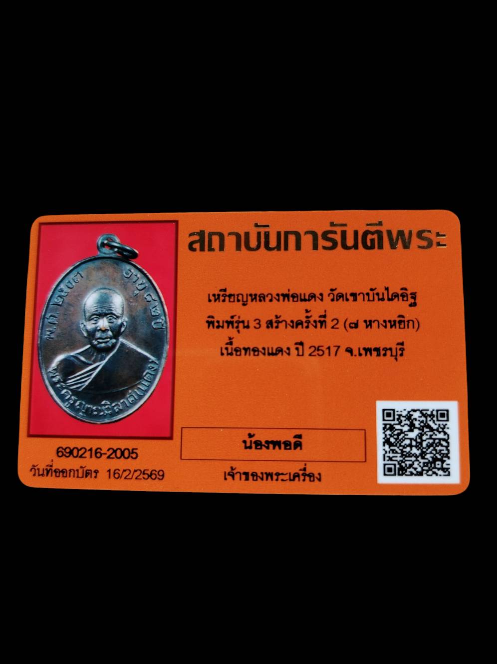 เหรียญหลวงพ่อแดงวัดเขาบันไดอิฐ รุ่น 3 7 หางหยิก ปี 17 มาพร้อมบัตร