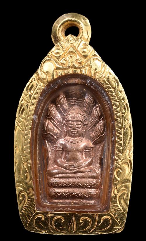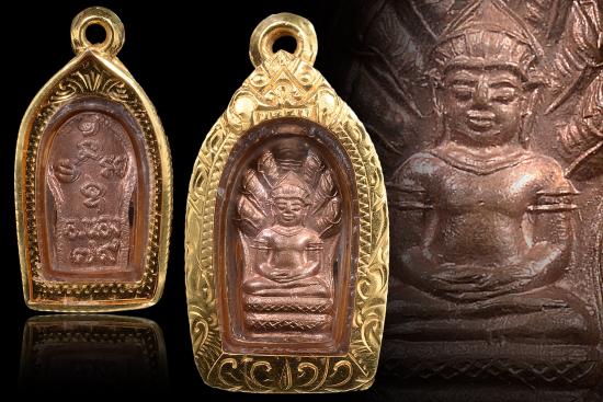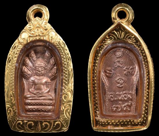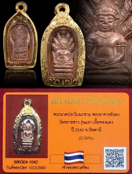 พระนาคปรกใบมะขาม ลป.ทวด อ.นอง เนื้อทองแดง ปี 2540 สวยเดิม ผิวแดงมาก "พิมพ์นิยมมีขีด พร้อมเลี่ยมทองคำ (ไม่มีห่วงทองคำ) ครับ