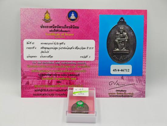 เหรียญหลวงพ่อคูณ รุ่นครบ 6 รอบ เนื้อนวโลหะปี 2537 พร้อมใบประกาศ |