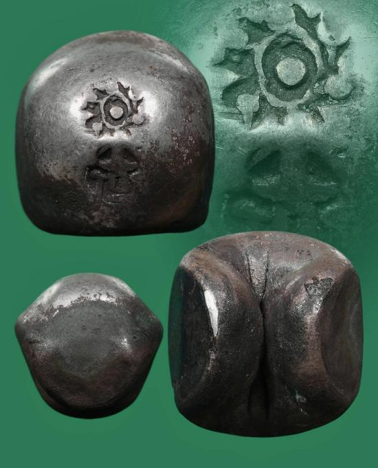 เงินพดด้วงโบราณ ตอกพระแสงจักร-ตราปราสาท ร.3 สวยเดิมๆครับ น้ำหนัก 15.33 กรัม เปอร์เซ็นเงิน92.7%