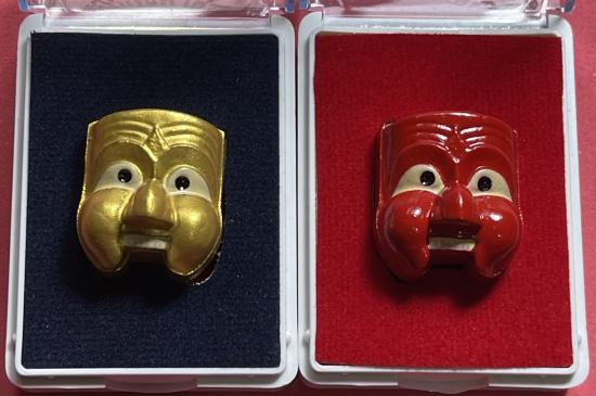 หน้ากากพรานบุญ รุ่น ล่ำซำ99 พ่อท่านพรหมวัดพลานุภาพ จ.ปัตตานี ปี2558 เนื้อว่าน (หน้าแดง+หน้าทอง) พิมพ์ใหญ่