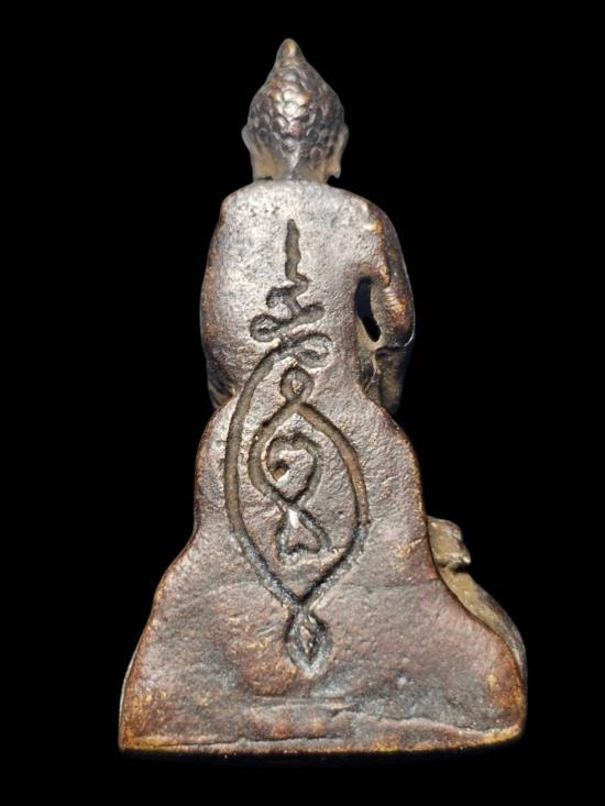 รูปหล่อพระพุทธปางป่าเลไลย์ หลังยันต์ เนื้อทองเหลือง
