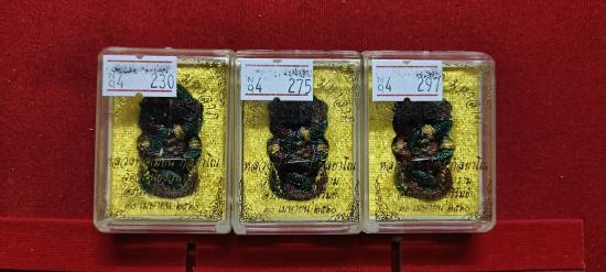 นาคาเปิดโลกมหาลาภ หลวงพ่อเมียน กัณยาโณ วัดบ้านจะเนียง จ.บุรีรัมย์ เนื้อเทวฤทธิ์ลงยาเขียว-แดง ฝังพลอย สร้าง 499 องค์ จององค์ละ400บาท ชุด 3องค์ หมายเลข 230/275/297 กล่องเดิมๆ ประกันแท้ แน่นอน